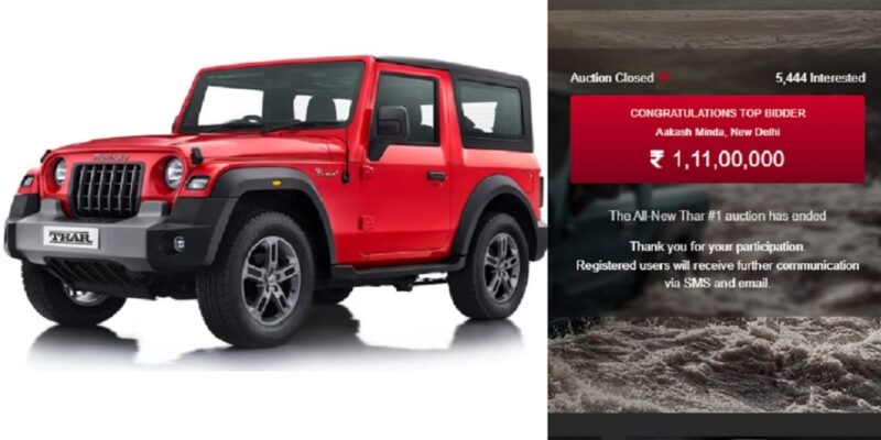 First-ever 2020 Mahindra Thar Sold for More than a Crore